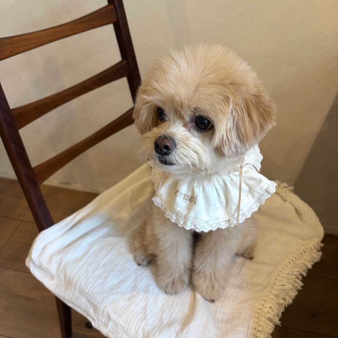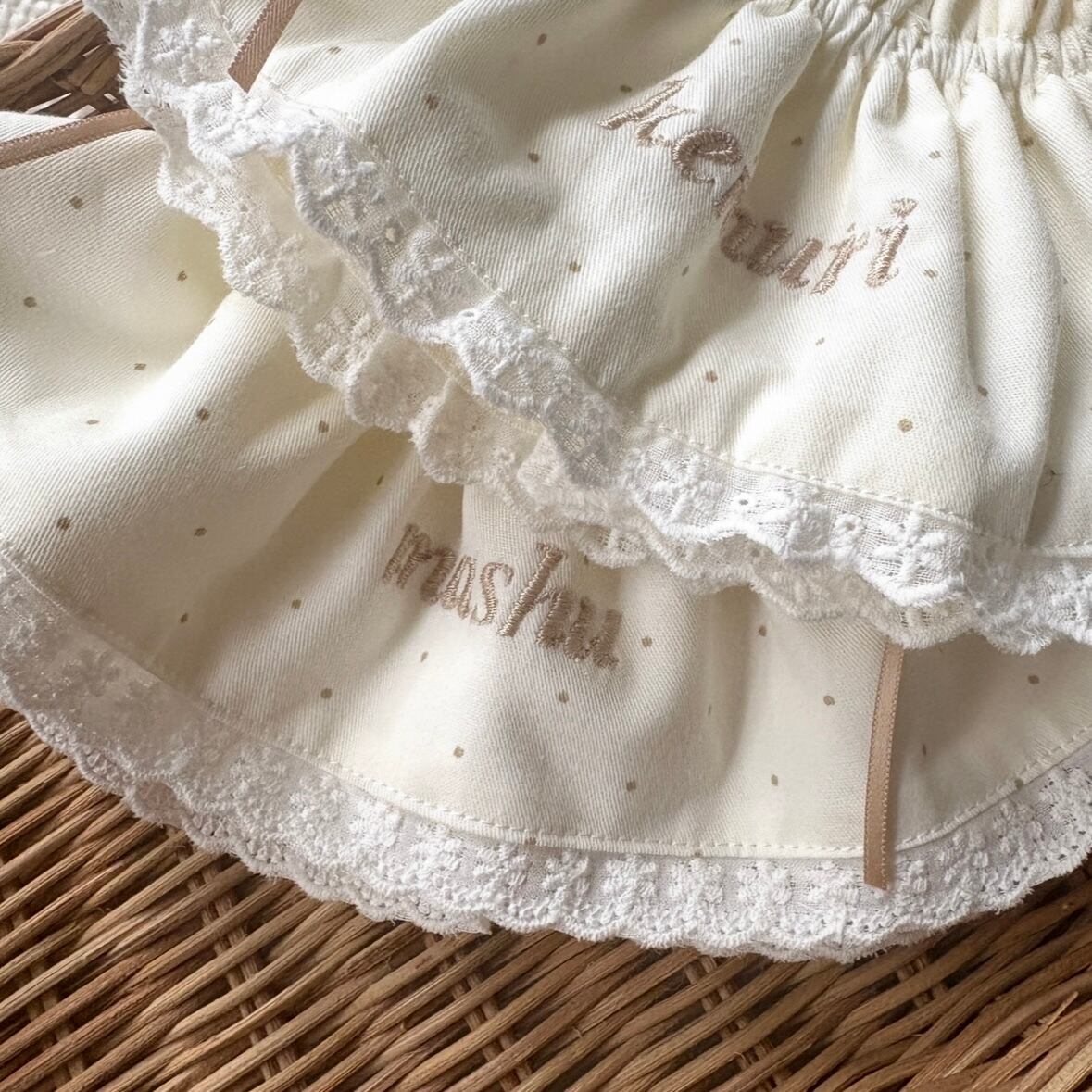 ほんのりクリーム色のベースにベージュドット柄の生地⸝⋆